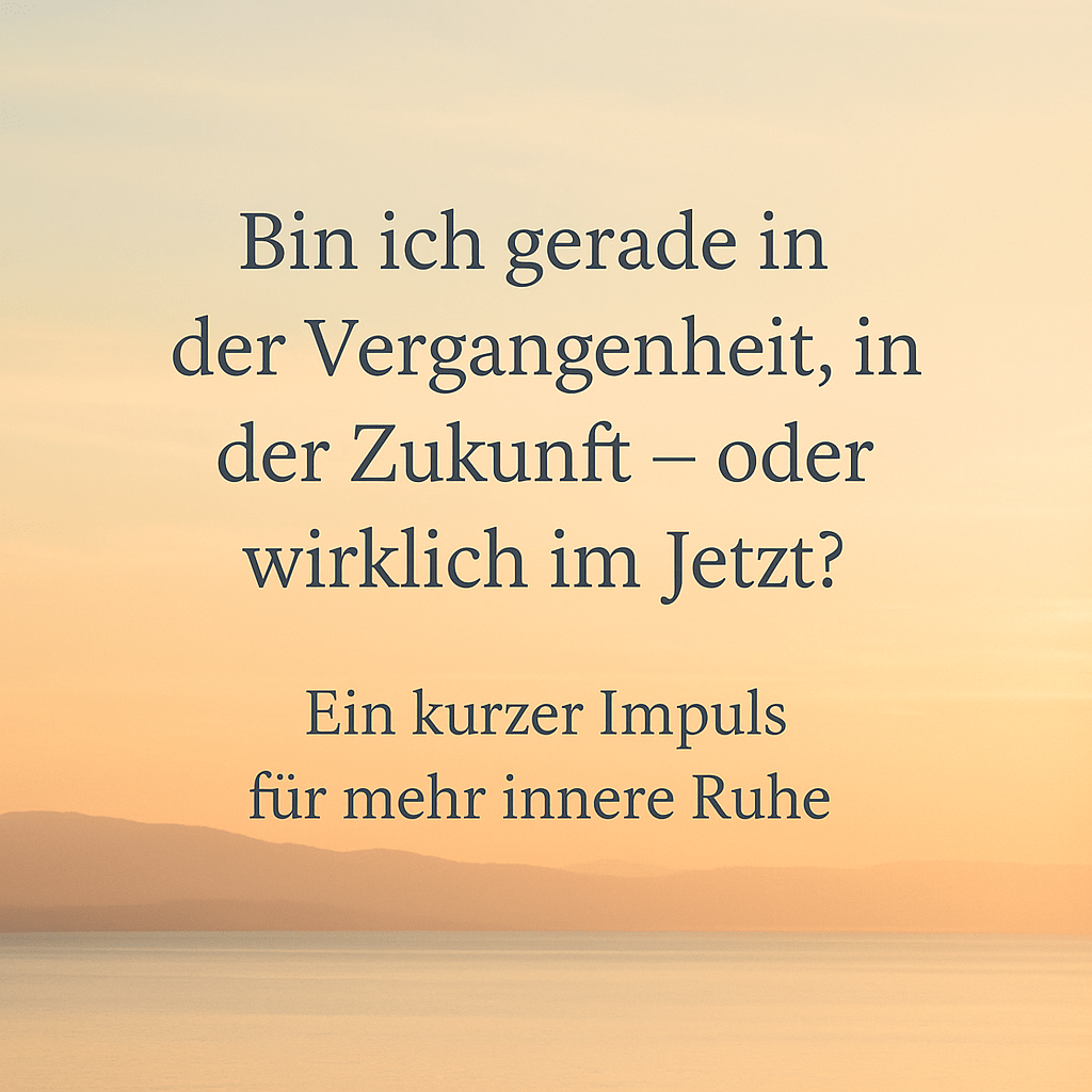 - Stell dir im Alltag immer wieder die Frage: „Bin ich gerade in der Vergangenheit, in der Zukunft – oder wirklich im Jetzt?“
